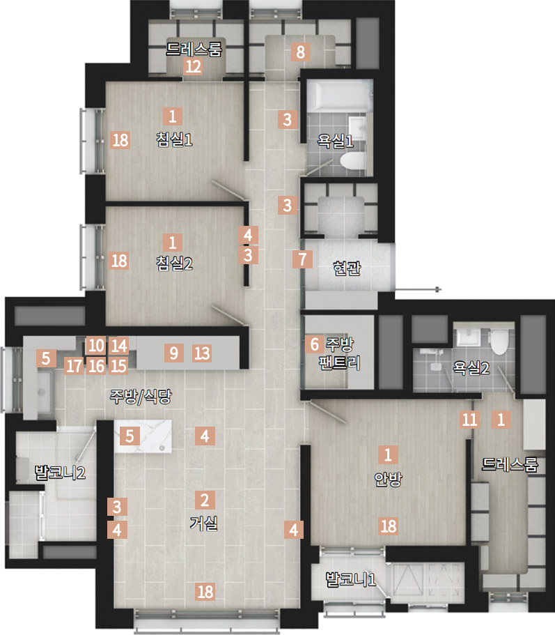 7 현관중문 8 복도 팬트리 9 냉장고장 특화